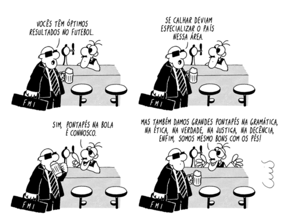 O cartoon do Público de hoje, tem tanto de humorístico como de sério. O primeiro caminho para desviar a crise deveria talvez (quem sou eu para pensar que sei alguma coisa) passar por analisarmos o que temos vindo a fazer há quase quarenta anos...
