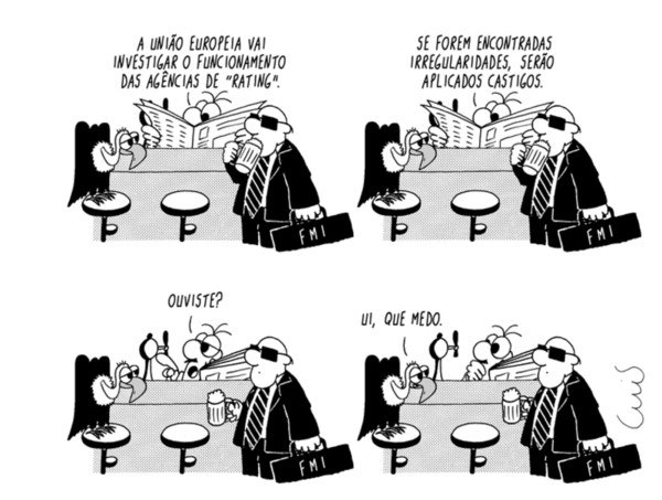 Será caso para cantar: Quem tem medo do lobo mau, lobo mau, lobo mau? Certo é que chegámos ao ponto em que o poder político se ajoelha perante o poder económico atirando para a guilhotina os direitos sociais enquanto do lado oposto se vê a corrupção a rir-se a bandeiras despregadas... estamos bem servidos...